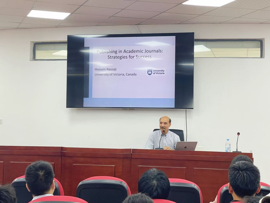 6月16日下午,应科研部和外国语学院邀请,加拿大维多利亚大学Hossein Nassaji教授在外国语学院A231学术报告厅作题为“Publishing in Academic Journals: Strategies for Success”的学术讲座,外国语学院师生代表60余人参加,讲座由外国语学院院长雷鹏飞主持。