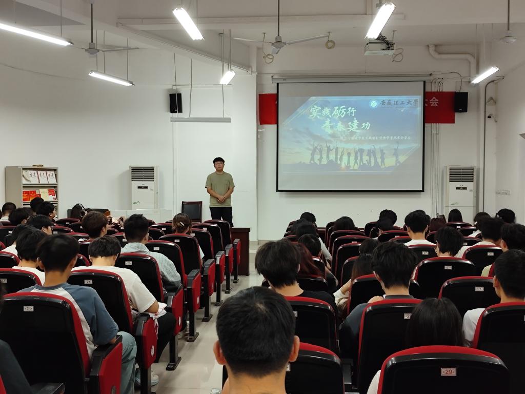 江文锐、罗鑫、经士锐三位同学结合亲身经历分享自身感悟。江文锐将志愿服务淬炼成滋养成长的生动课堂,她结合“蚂蚁力量”志愿服务小队中的实践经验,通过“丰收的故事我来说”“夏日送清凉”等鲜活案例传递公益感悟,紧扣新时代脉搏,在实践中点燃青少年的主动性与创造力。罗鑫讲解了团学工作中“三力协同”法则——以团结氛围为根基,以担当精神为利刃,以纯粹初心为航灯,三力交融铸就无往不胜的战斗力。面对活动困境,他提出“两班联手策划+学生会资源对接”的协作模式,精准激活基层细胞,释放澎湃服务动能。经士锐以自身经历为引,生动诠释从象牙塔学子到乡土建设者的蜕变之旅。他分享了参与基层工作的日常点滴,详细介绍了政府组织的各类基层服务项目,以此鼓励更多同学勇敢迈出第一步,投身基层建设。他深信,在基层这片广阔的天地里,每一位怀揣梦想的青年都能找到实现价值的舞台,书写属于自己的精彩人生篇章。