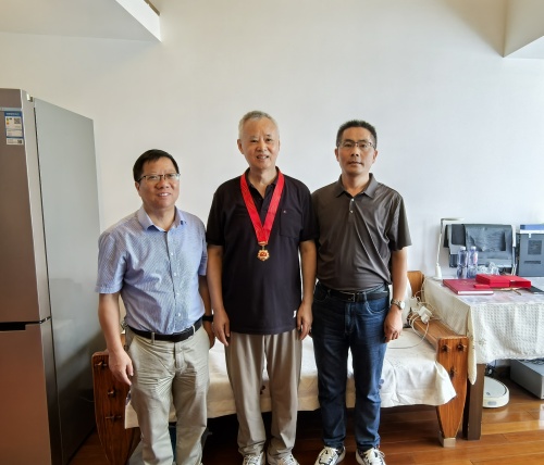颁发仪式后,徐关怀对他不忘初心、为党的教育事业奋斗奉献几十年表示由衷的敬意和感谢,详细了解他当前的生活情况、身体状况等,祝愿他健康长寿,请他继续充分发挥自身优势、弘扬优良传统、积极建言献策,为学院高质量发展贡献智慧和力量。