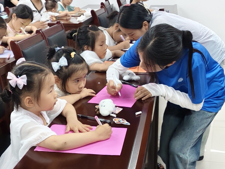 在“两弹一星”知识问答中,孩子们踊跃抢答,展现出对科学的浓厚兴趣。主题拼图游戏中,团队成员指导孩子们完成“两弹一星”故事拼图,用彩笔、彩纸绘制“火箭贴纸”,让大家在重温历史岁月中汲取勇于奋进的精神力量并产生共鸣。活动最后还为现场的每一位小朋友颁发了“红色小先锋”奖章。