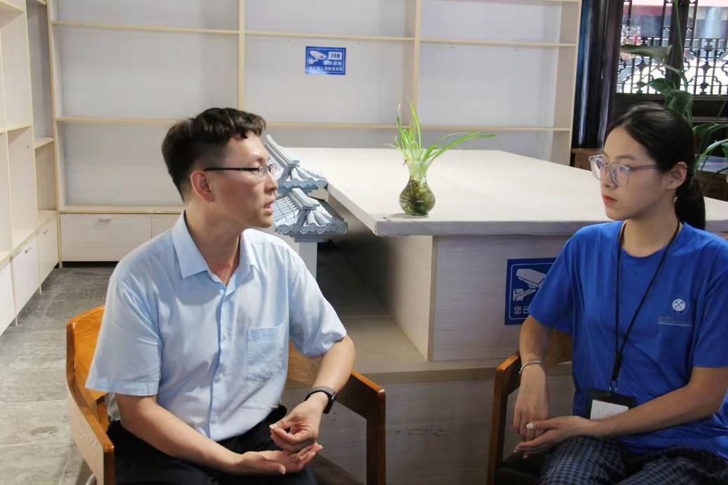 7月2日上午,团队首先抵达李鸿章故居。成员们通过参观故居陈列的文物与史料,拍摄专题素材,系统梳理李鸿章家族与徽商群体的互动脉络,积累了研究徽商文化历史的一手资料。当天下午,团队专访了李鸿章故居讲解员。讲解员凭借详实史料,剖析了李鸿章家族根源和徽商在其家庭背景中的具体体现。团队结合前期调研结果,围绕李鸿章生平与徽商文化的内在关联、徽商对其仕途的推动作用等话题和讲解员展开探讨。