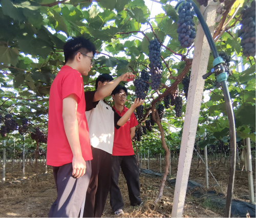 实践团还先后赴葡萄种植园、盼盼食品有限公司、谷优美食品科技有限公司,听取了农户的讲解和公司技术人员的介绍,感受小岗村融合发展新貌。