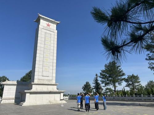 缅怀革命先烈,传承红色精神。实践队走进肥西县烈士陵园,清晨松柏苍翠,纪念碑巍然矗立。实践队员中的师生党员整齐列队于纪念碑前,高举右拳,庄严地宣读入党誓词:“我志愿加入中国共产党,拥护党的纲领,遵守党的章程……”铿锵誓言在陵园上空久久回荡,彰显新时代青年对党的忠诚与为共产主义奋斗终身的坚定决心。”