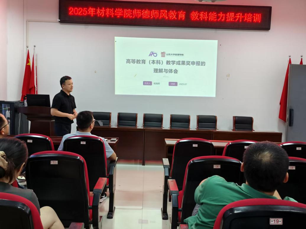 7月5日至6日,材料科学与工程学院举办2025年度教师“师德师风教育、教科能力提升”培训,由副院长(主持工作)王庆平主持,全体教职工参加培训学习。