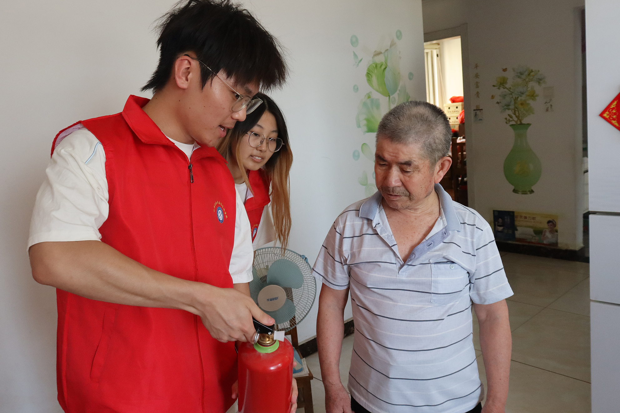 活动尾声,团队成员前往慰问当地老人,为老人们送去灭火器和生活必需品,与老人们亲切交谈,并为他们科普灭火器的使用等安全知识,传递温暖与关怀。