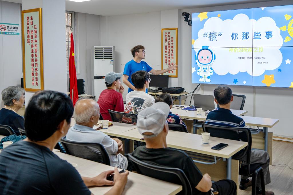在金星社区党群服务中心的支持下,志愿者们带领辖区内儿童参观邓稼先生平陈列馆,通过史料观摩与讲解聆听,孩子们直观感受“两弹元勋”的卓越精神。随后,志愿者们以童趣语言开展核知识宣讲,互动热烈,活动获怀宁新闻网报道。