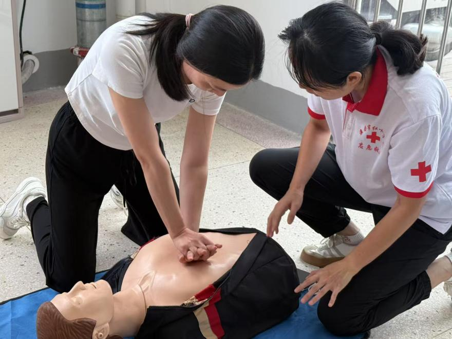 为强化学习效果,医护人员现场进行心肺复苏实操示范,从环境评估、呼救报警到胸外按压、人工呼吸,逐一讲解急救要点,并纠正操作误区。全体教师在指导下进行分组练习,通过模拟场景将理论知识转化为实战能力。
