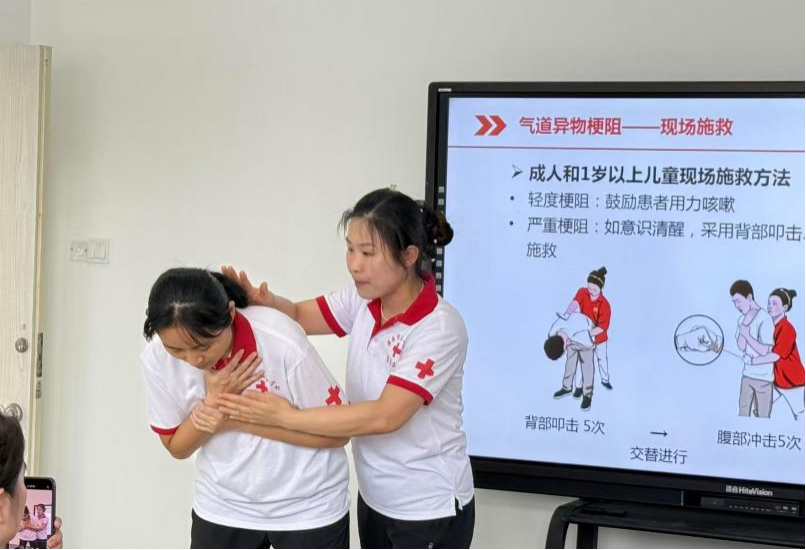 培训围绕幼儿常见突发状况进行展开,详细讲解烫烧伤、流鼻血、头部外伤、癫痫及热性惊厥的科学处理步骤,强调“冷静判断、规范操作”的重要性。针对气道异物梗阻这一高风险意外,重点介绍了海姆立克急救法的原理与操作要领,通过分解演示背部叩击法、腹部冲击法和胸部冲击法,帮助教师掌握不同情境下的应对策略。