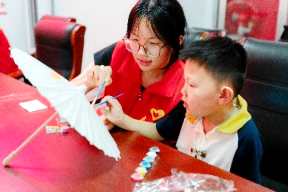 6月26日,队员以“七一”为契机讲述红色故事,播撒爱国种子;指导儿童制作熊猫不倒翁、绘制油纸伞等非遗手工作品,形成“知识-实践-创意”教育闭环。7月1日,在幼儿园设计安全知识闯关游戏,30位儿童通过情景化互动掌握交通、防火、防溺知识。