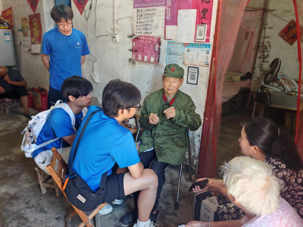 7月5日,实践团在王寨镇退役军人服务站刘敏站长的带领下,拜访了现年94岁的抗美援朝老兵郭吉宣。老人讲述1951年入朝作战时冒死抢运物资、被战友从弹坑救出的经历,泪光中尽显赤诚。刘敏介绍,王寨镇退役军人服务站始终践行“让退役军人受尊重、让军人职业受尊崇”理念,从政策落地的“最后一公里”到生活冷暖的“细微之处”,用实打实的行动为退役军人做好各项服务工作。