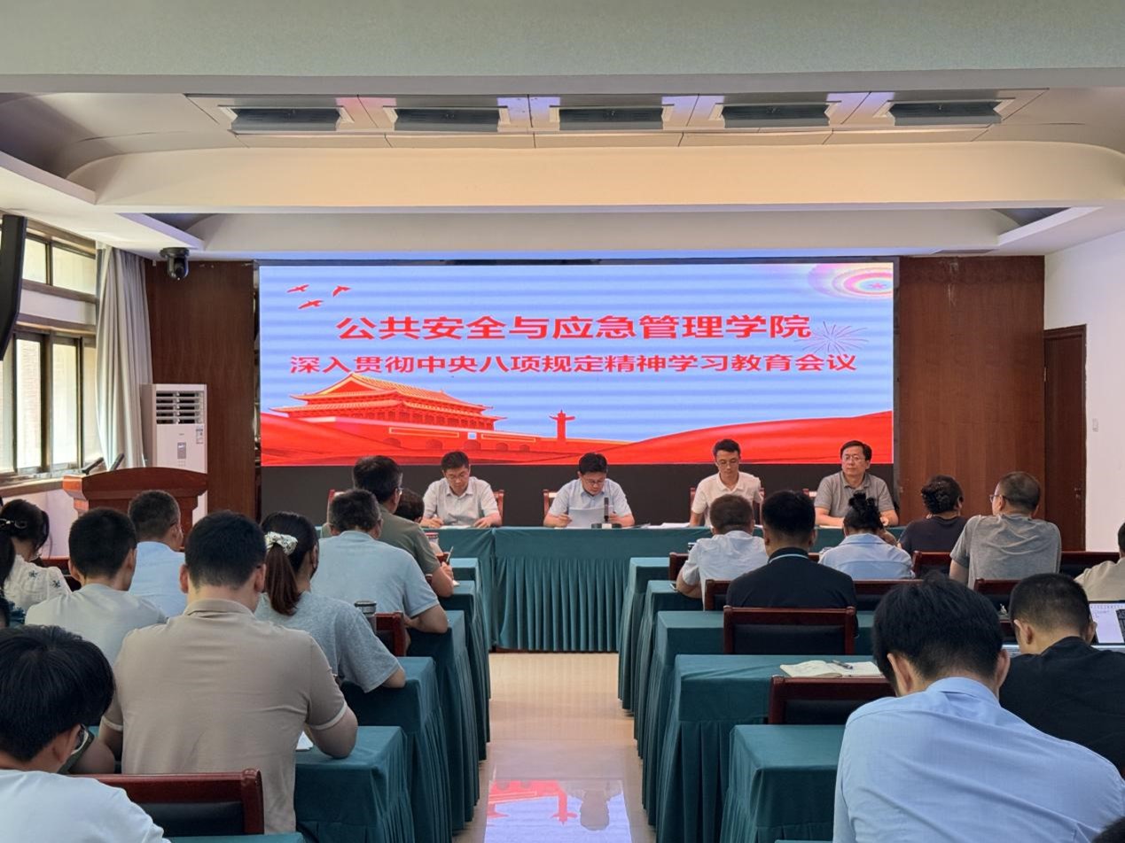 7月10日下午,公共安全与应急管理学院在明德楼第二会议室召开深入贯彻中央八项规定精神学习教育工作会议,传达学习中央层面、省级层面及学校层面学习教育工作专班部署要求,部署学院深入贯彻中央八项规定精神学习教育工作。学院党委书记聂士斌主持会议,学院全体教职工参加会议。