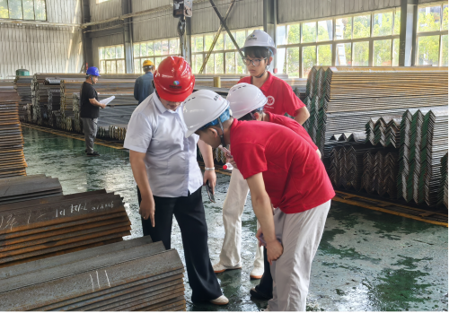 随后,实践团来到角钢加工车间感受毫米级精度背后的“黑科技”,操作员现场讲解由企业自主研发的国内首条角钢激光打标与切割一体化生产线,实现角钢从上料到成型的全流程自动化,精度控制在±0.3毫米以内、效率提升30%,技术指标达国际领先水平。