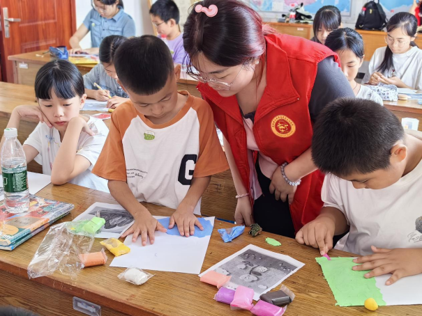 团队开设“向榜样学习,成为想成为的人”的艺术思政劳育实践活动,以太平湖镇本土榜样为原型,讲述他们坚守岗位、奉献社会的故事。在志愿者的引导下,孩子们用彩色黏土创作自己敬佩的榜样人物,将“助人”“坚守”“奉献”等精神具象化。同时,鼓励孩子们写下自己的愿望,制作时间胶囊,激励孩子们努力学习,为实现梦想而奋斗,帮助孩子们树立了正确的价值观。