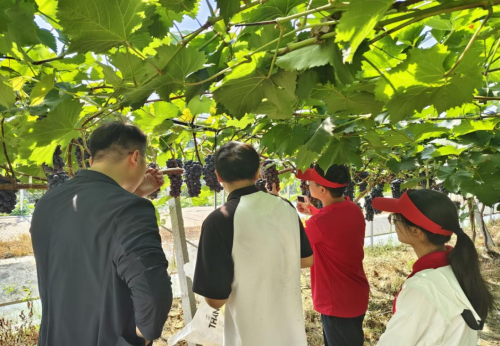 深入研学小岗村精神文化之余,实践团还走进小岗匠心葡萄园,了解现代农机设备、学习种植技术、体验葡萄采摘、为农户直播带货……