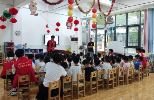 实践团走进安徽理工大学附属幼儿园,开展“萌娃识节气”童趣课堂。成员们以故事讲述古人创造节气的奥秘,通过绘画手工让孩子们描绘节气风貌,还通过情景再现模拟节气更迭。这让二十四节气传统文化在幼儿心底萌芽,将“非遗”传承的起点落在童真岁月里。