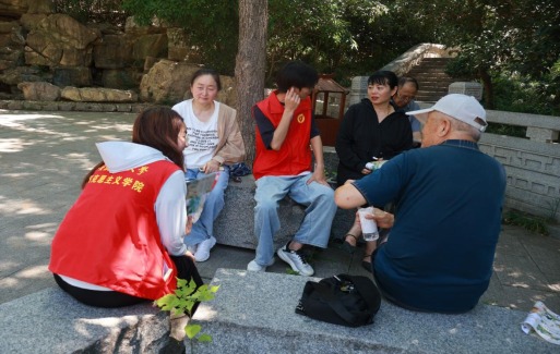 实践团在八公山风景区开展活动。团队联合当地“星火八公”志愿者协会招募青少年,开设二十四节气主题剪纸创作工坊。志愿者们手持剪刀、红纸,传授传统剪纸技艺,带领孩子们在纸张翻转间,剪出“立春萌芽”“芒种稻穗”等节气图案,沉浸式感受节气文化魅力。同时,实践团专访当地手语青年志愿讲解者谢奇文,倾听他以特殊“语言” 传递节气文化的暖心故事,无声的手势里,流淌着对传统文化传播的热忱。