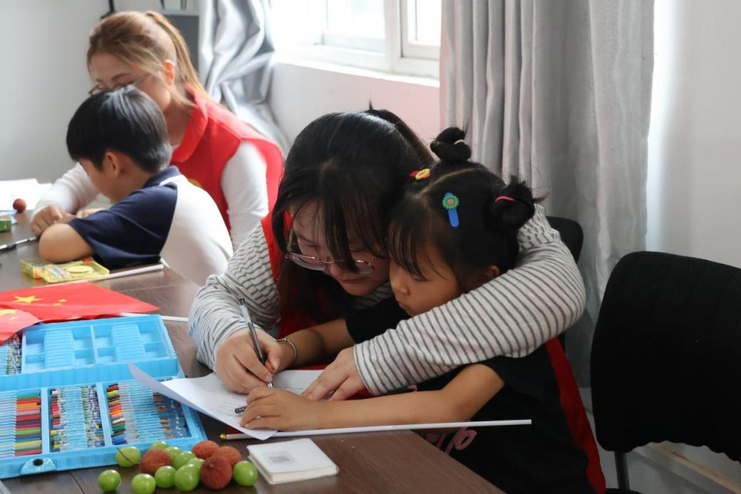 实践不仅在于“知”,更在于“行”。在蔡山社区,队员王文君为孩子们讲述了陈氏父子追求真理、舍生取义的动人故事。精心挑选的党史动画片让孩子们沉浸于革命岁月的波澜壮阔,紧张处屏息凝神,激昂处掌声雷动。互动环节,孩子们踊跃抢答。课程尾声,队员们指导孩子们亲手绘制党徽,稚嫩笔触饱含赤诚。