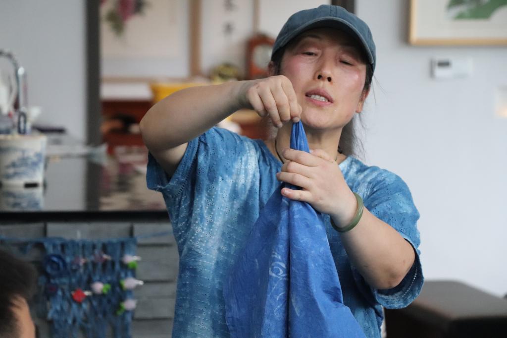 演示扎染工艺(摄影:田申、李夏宇)