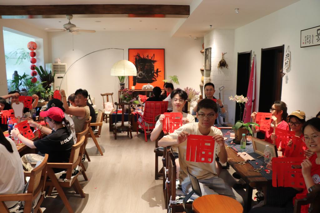团队成员体验剪纸