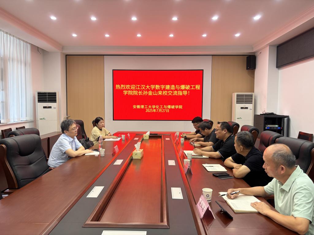 7月27日,江汉大学数字建造与爆破工程学院院长孙金山教授一行来化工与爆破学院开展合作交流,双方围绕学科建设、青年教师发展等议题展开深入探讨。