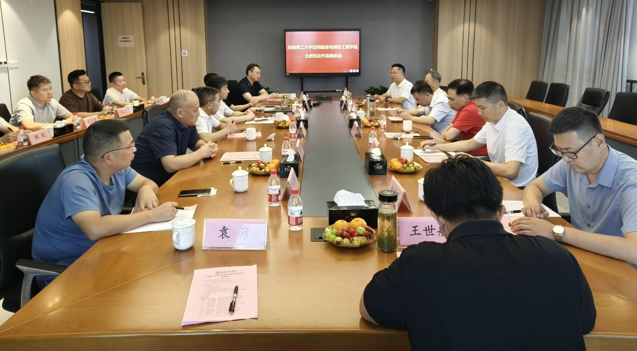 时值学校80周年校庆、空间信息与测绘工程学院成立15周年之际,为凝聚校友力量,共绘发展蓝图,7月27日,空间信息与测绘工程学院在合肥庐阳大数据产业园召开校友代表座谈会。学院党委书记范洪喜主持座谈会,院长王磊及多位教师代表与10余位在肥校友代表齐聚安徽伟宏钢结构集团股份有限公司,共叙情谊、共谋发展。