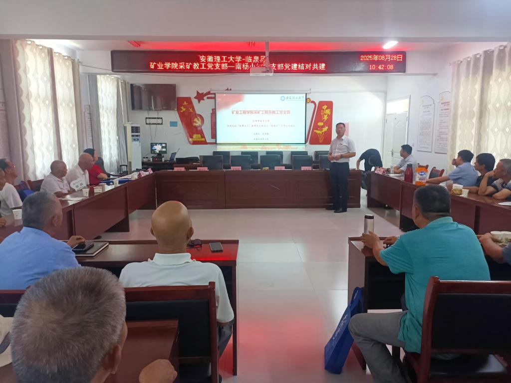 经学校党委组织部与临泉县委组织部会商,8月28日,矿业工程学院全国高校党建工作样板支部、“双带头人”教师党支部书记“强国行”专项行动团队赴临泉县开展以“支部联建、科技赋能、理论宣讲”为主题的党建结对共建活动。