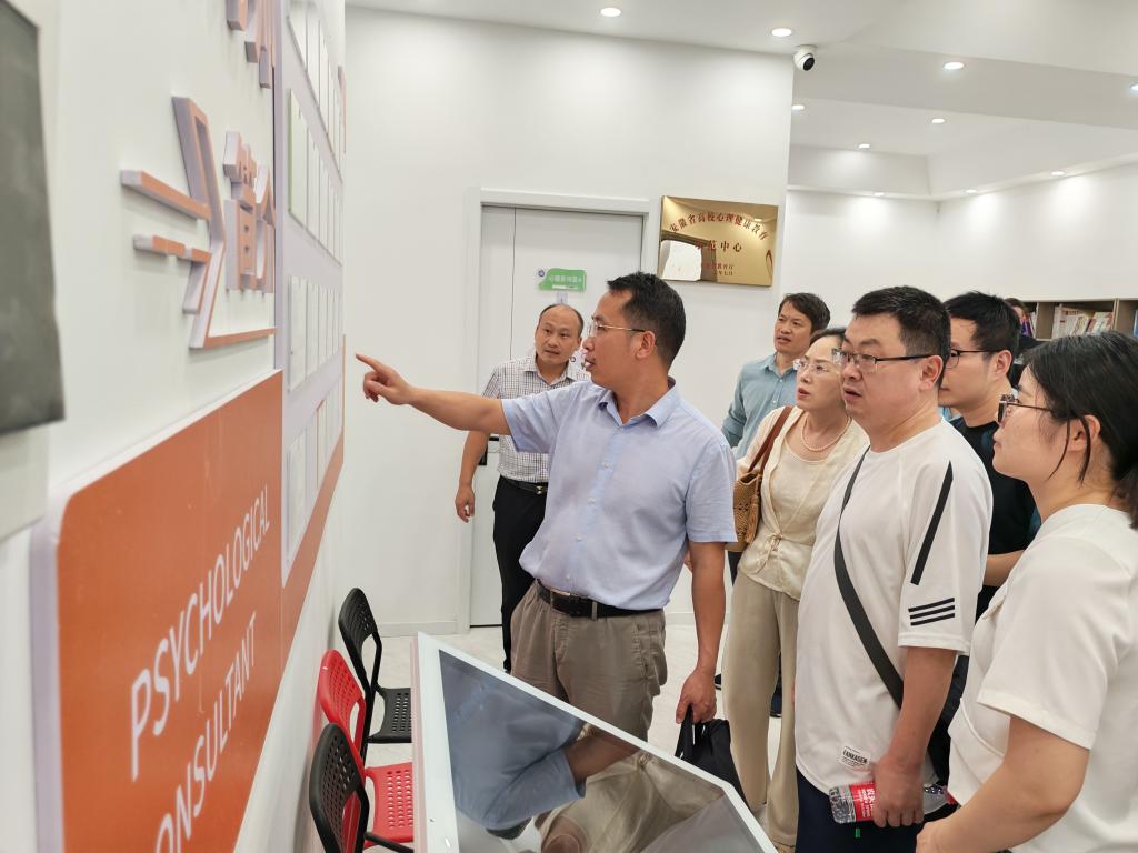 会后,在我校学生处负责人陪同下,赵思莉一行参观了我校学生心理健康教育中心。