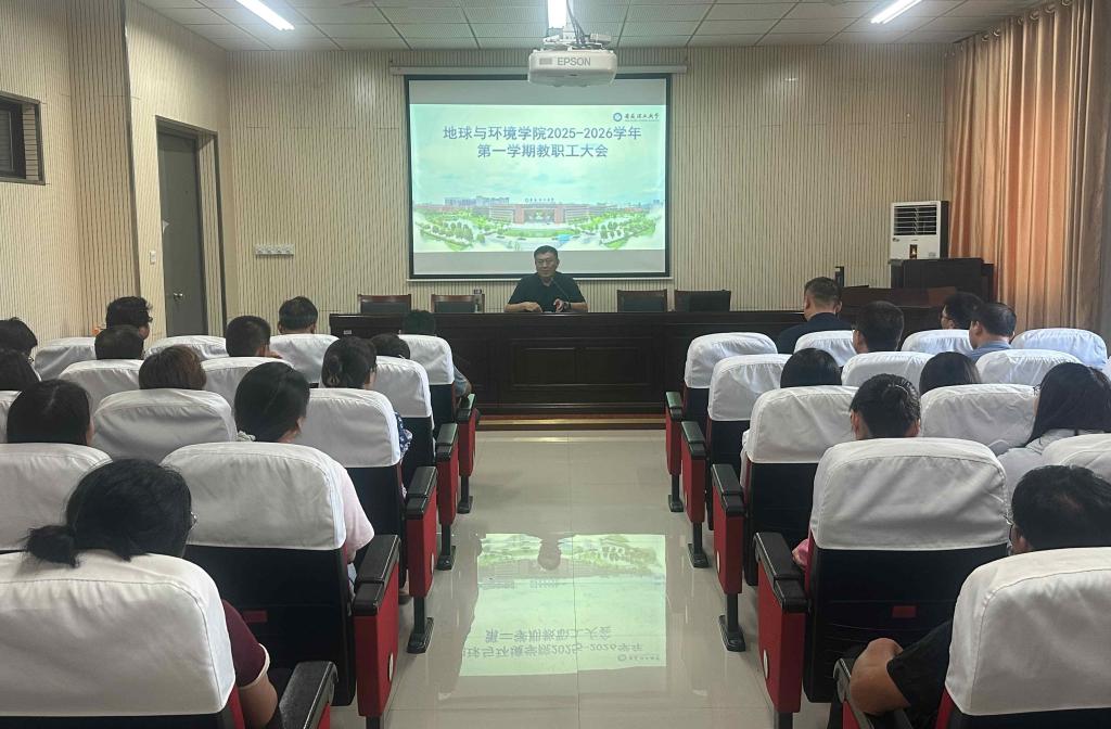 9月5日下午,地球与环境学院在静远楼B406会议室召开新学期教职工大会。学院领导班子成员及全体教职工参加大会,会议由学院党委书记陈楠主持。