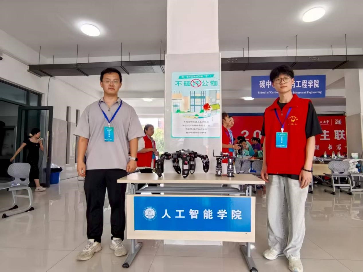 学院创新引入六足机器人和双足机器人,在报到处进行动态展示,吸引了众多新生及家长驻足观看。学院还设置了以“AI梦想启航”为主题的创意打卡点和新生照片墙,为新生家庭提供合影留念的场景。