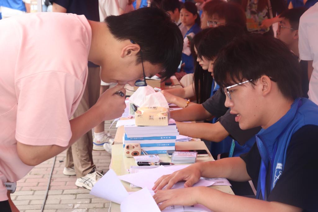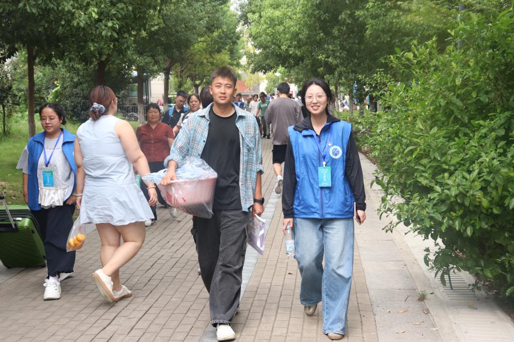学院“π动力”志愿服务队成员们身着统一服装,在校门、报到处、宿舍区等10余个点位提供“一对一”全程引导服务,以饱满的热情和耐心的态度,将“奉献、友爱、互助、进步”的志愿精神融入每一个服务细节,为新生快速适应校园环境提供了切实帮助。