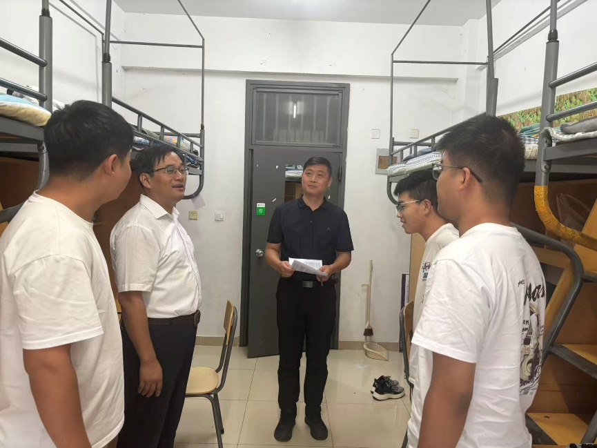 迎新期间,学院领导与新生辅导员走访新生寝室,与同学们亲切交谈,细致询问进校适应情况,叮嘱新生尽快融入集体、适应校园环境,鼓励新生明确奋斗目标,科学规划大学生活。