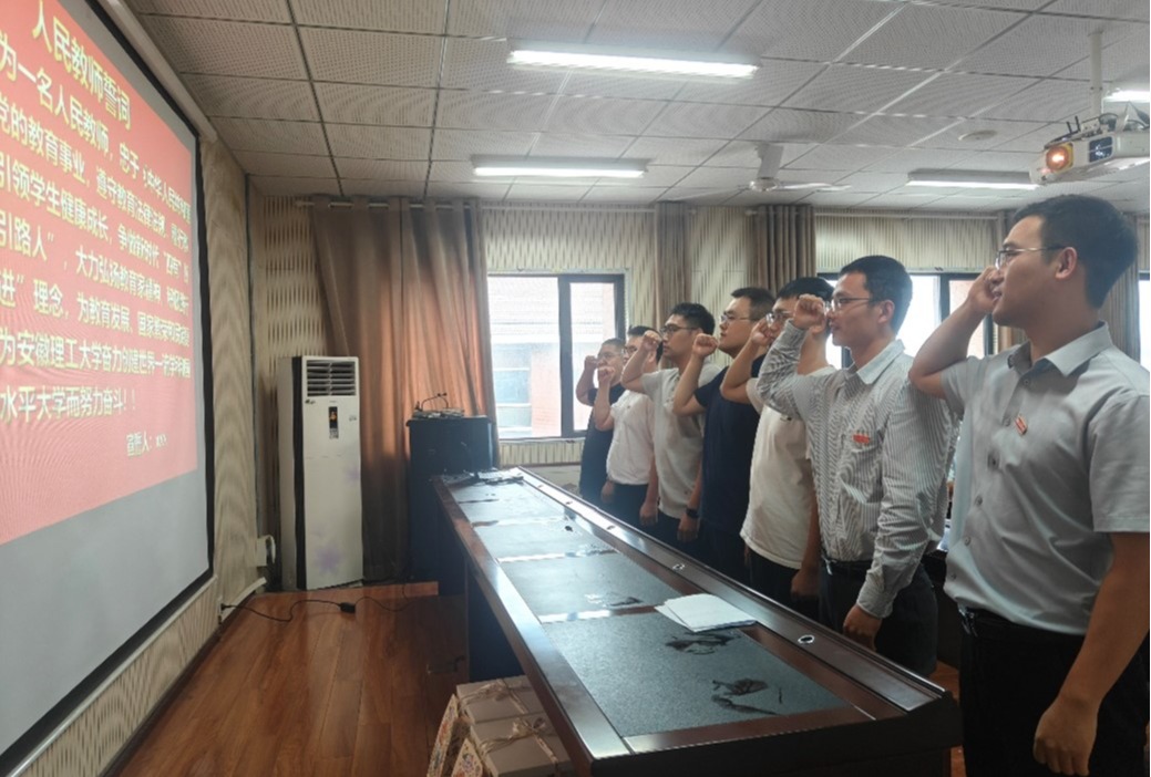 学院党委书记常聚才传达了学校庆祝第41个教师节暨先进集体和先进个人表彰大会精神。他强调,学院全体教师要按照《关于弘扬教育家精神加强新时代高素质专业化教师队伍建设的意见》要求,将教育家精神作为自觉追求,全身心投入到教育教学工作中。他勉励新入职教师,要牢记学校“心中有学校、心中有老师、心中有学生”的办学理念,敢于站上讲台、勇于站稳讲台、善于站好讲台,在实践中不断提升教学水平,不断提升学院人才培养质量。