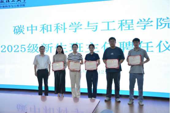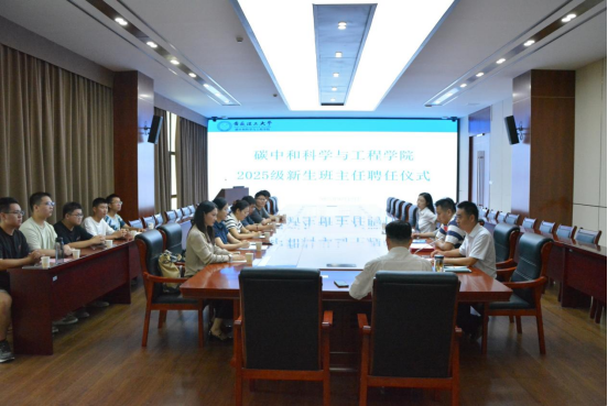 9月12日上午,碳中和科学与工程学院在产教融合楼一楼会议室举行2025级新生班主任聘任仪式。院党委书记武成利、党委副书记王鹏,全体辅导员、优秀班主任代表,以及2025级新生班主任、新生代表共同参会,仪式由王鹏主持。