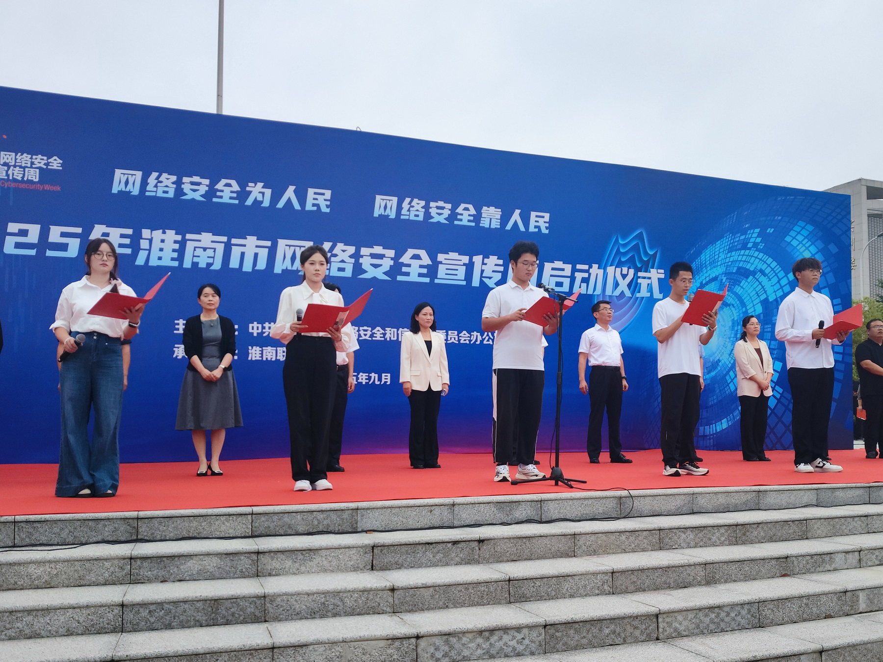 9月11日下午,由淮南市委网信办主办的2025年网络安全宣传周活动在淮南联合大学开幕。本届活动以“网络安全为人民网络安全靠人民——以高水平安全守护高质量发展”为主题,旨在深化全民网络安全意识,筑牢高质量发展安全屏障。我校20余名师生代表与其他在淮高校、政府部门、企事业单位共同参加了启动仪式。