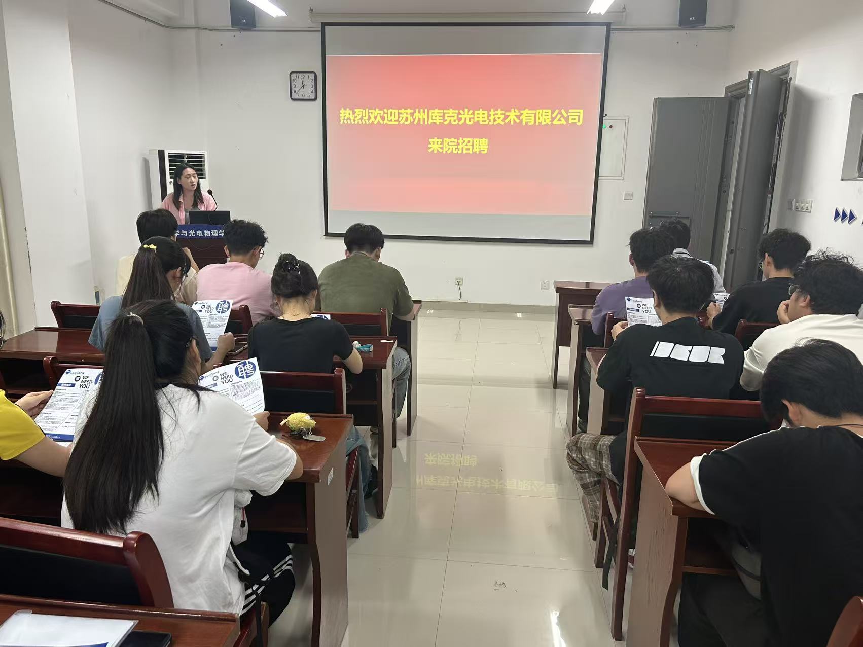 相较于大型综合招聘会,本次专场招聘会采用“精准聚焦”模式,针对特定行业领域与专业背景进行深度匹配。苏州库克光电技术有限公司是一家专注于精密光学元件和光电传感器研发与生产的高新技术企业,其技术领域和人才需求与学院相关专业高度契合,为学生提供了专业对口发展机遇。