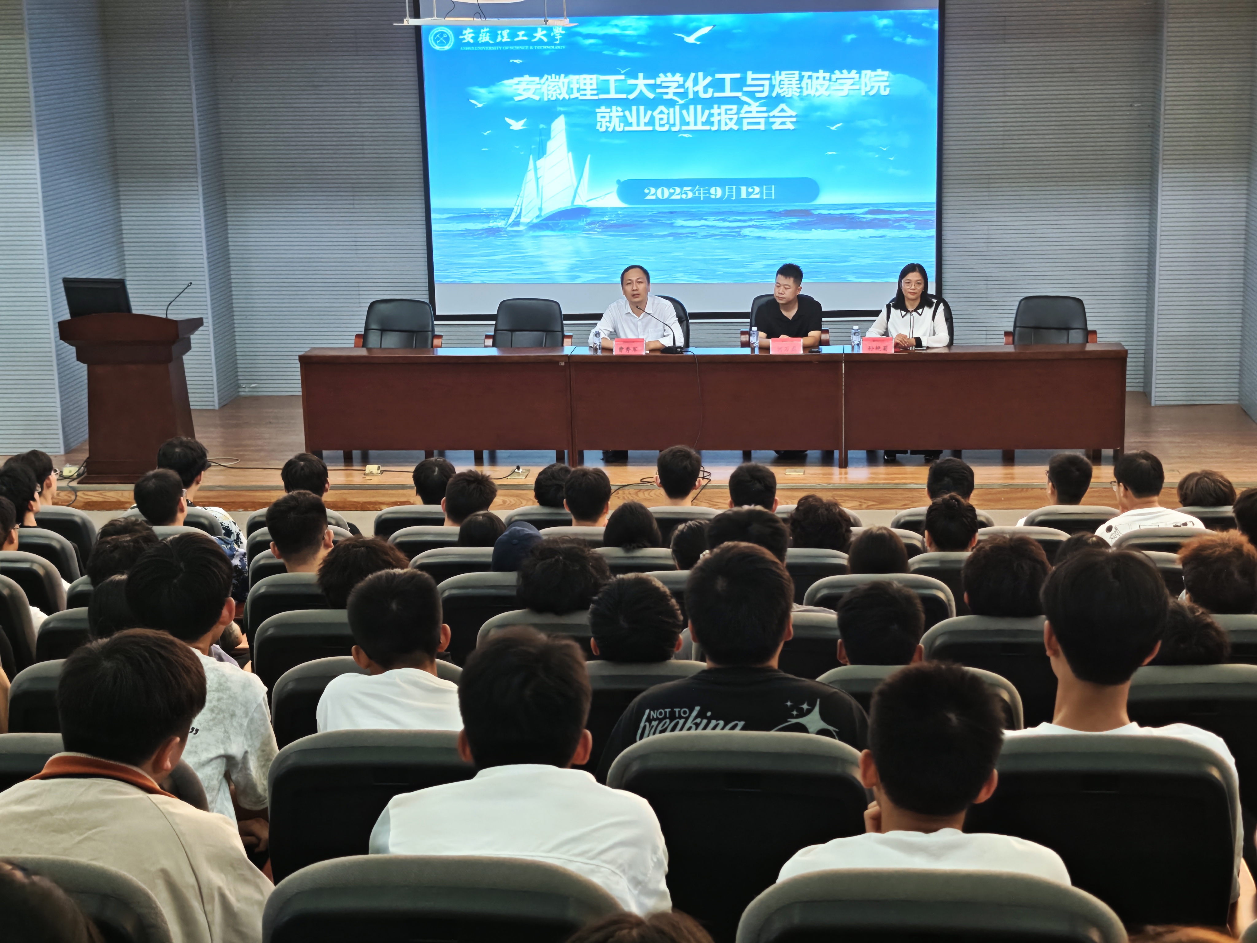 为积极引导2025级新生科学规划未来,提升就业创业意识,9月12日,化工与爆破学院在图书馆报告厅举办就业创业大讲堂。安徽君本集团董事长何万磊校友应邀主讲,报告会由学院党委副书记曹秀军主持。