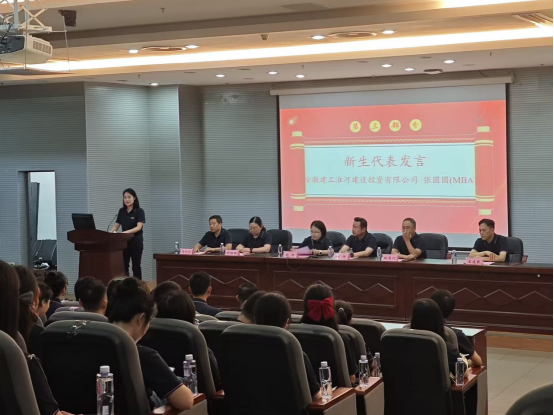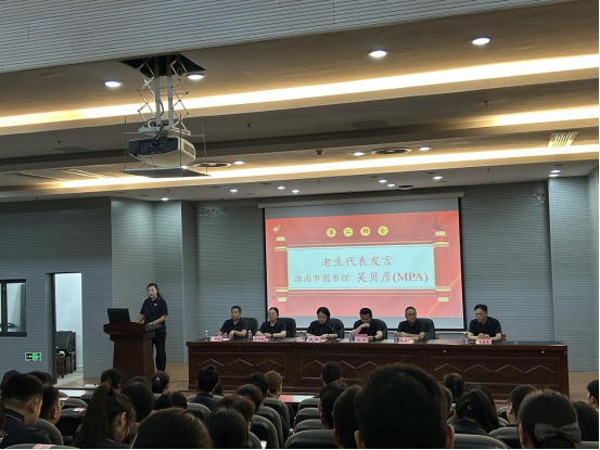 典礼上,2024级MPA学生代表吴贝彦结合自身经历,以“平衡”、“链接”、“共同体”与“初心”四个关键词分享了过去一年的学习体会,为新生提供了有益借鉴。2025级MBA新生代表张圆圆就未来三年的学习规划提出了自己的思考与建议。2025级MPA新生代表张瑾分享了报考安徽理工大学MPA的初衷,并就如何协调工作、生活与学习之间的关系进行了交流。