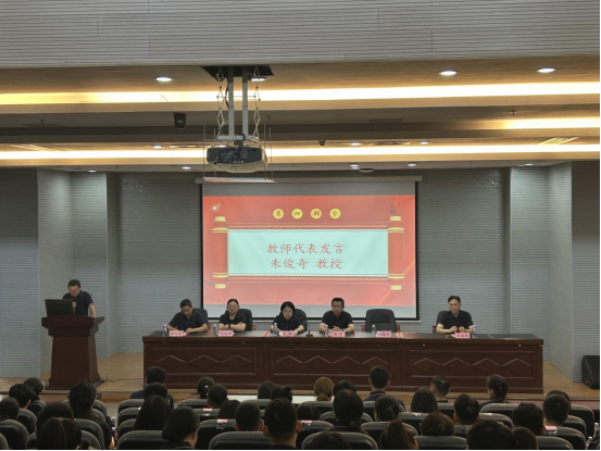 教师代表朱俊奇从自身经验出发,鼓励同学们坚持终身学习,不断提升认知层次;注重理论联系实际,践行知行合一;统筹好生活、工作与学习之间的关系,积极与导师和同学沟通交流。