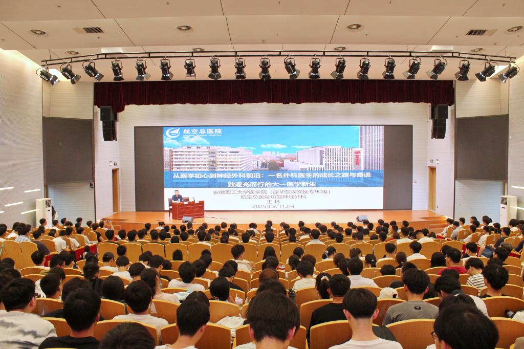 王林以《从医学初心到神经外科前沿:一名外科医生的成长之路与寄语》为题,围绕医学初心与践行、科研与实践、视野与责任等方面,介绍了职业医生的成长之路。他强调,要锻炼科研思维、珍惜实践机会,为未来就业打下坚实基础。