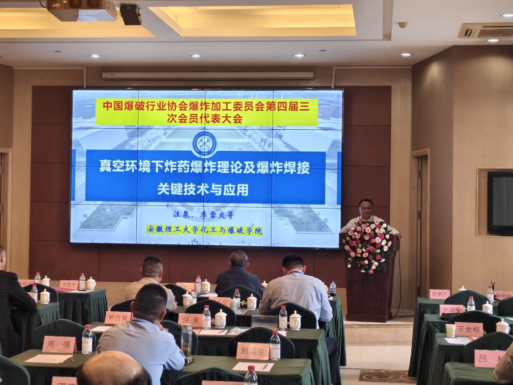 9月18日至20日,由中国爆破行业协会爆炸加工委员会、中国力学学会爆炸力学专委会爆炸加工组联合主办的第四届三次会员代表大会暨学术交流会在辽宁省铁岭市顺利召开。我校化工与爆破学院院长汪泉带领2位师生参会。