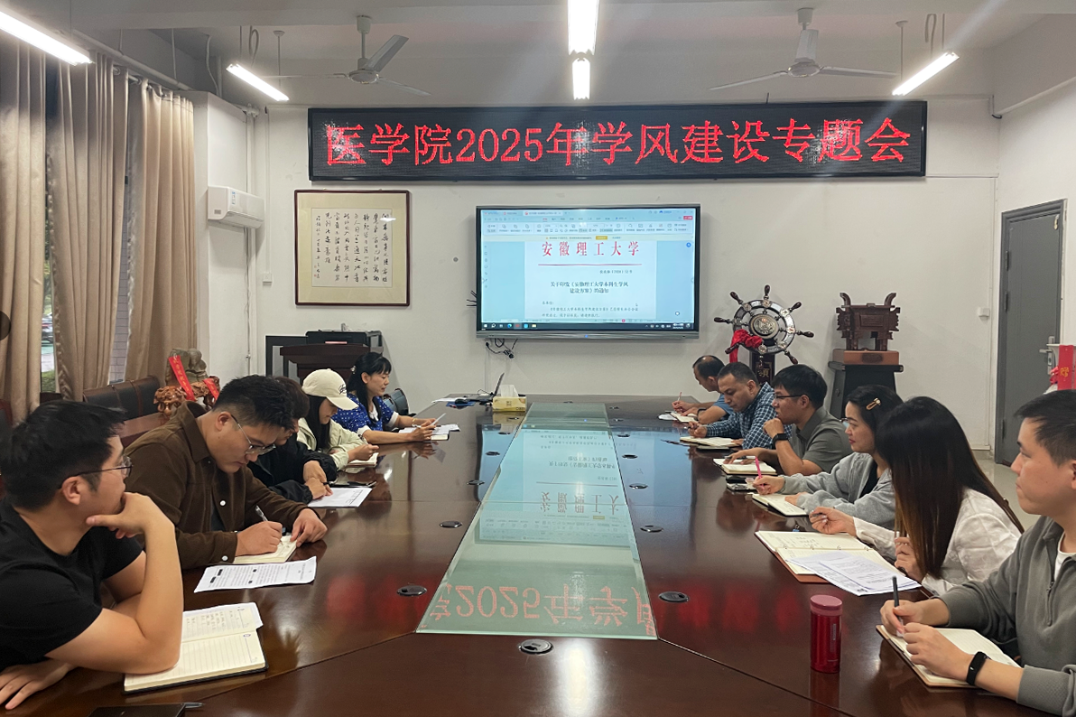 会议集中学习了《安徽理工大学本科生学风建设方案》,提出要深入加强学风建设,结合医学专业学习特点,采取切实有效的措施;结合学院实际,建立健全学风建设长效机制;重点落实深入宿舍、课堂检查、走进活动、严格管理等举措,营造勤学、善思、笃行的优良学习氛围,为迎接教育部新一轮本科教育教学审核评估打牢基础。