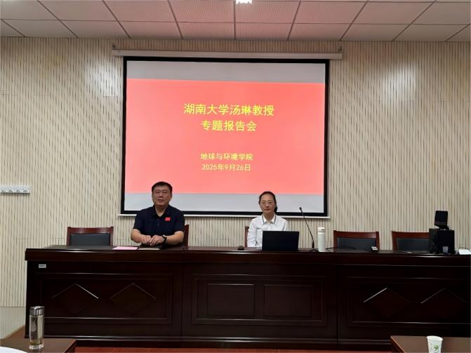 9月26日上午,湖南大学汤琳教授应邀来地球与环境学院作题为“湘江流域新污染物识别与环境风险研究进展”的学术报告。报告会由学院院长刘启蒙主持,学院青年教师、研究生和本科生代表120余人参加报告会。