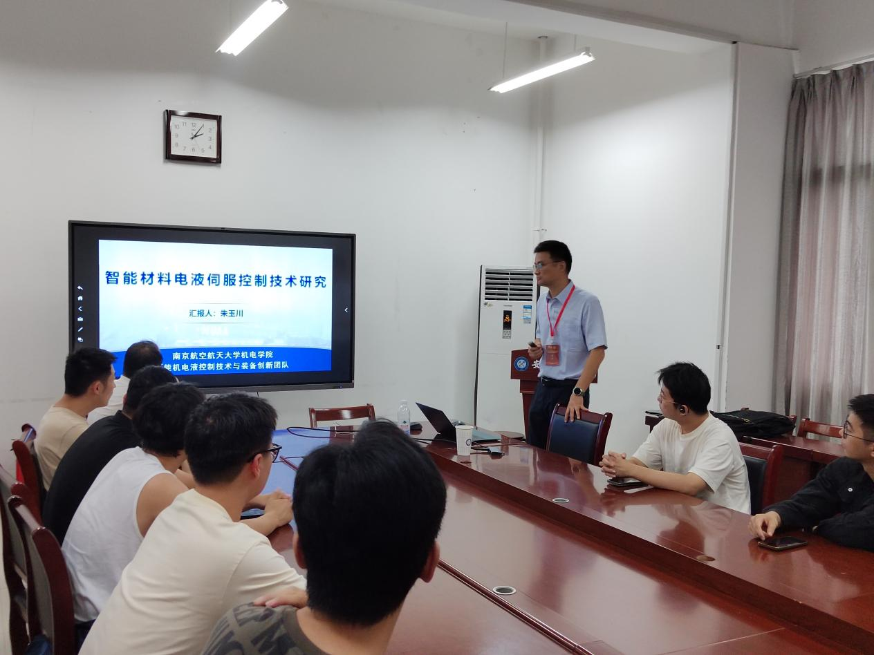 朱玉川教授报告题目为《智能材料电液伺服控制技术研究》。会上,朱玉川教授介绍了堆叠型智能材料电-机转换特性,智能电液驱动结构国内外研究现状与发展特点,重点介绍了南京航空航天大学智能机电液控制技术团队近5年的最新研究进展,包括压电偏转射流型两级电液伺服阀、压电数字驱动型两级电液比例阀、磁致伸缩超高频直驱型燃油伺服阀以及磁致伸缩多柱塞泵等几方面的研究成果。