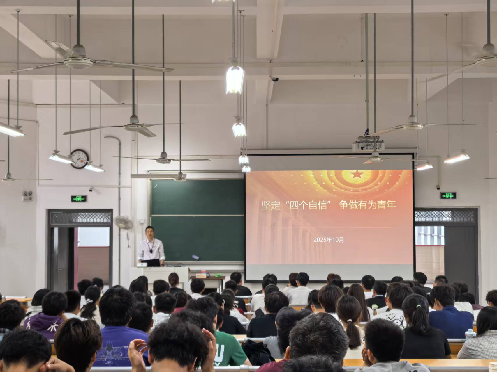 10月10日下午,空间信息与测绘工程学院在天工301教室举办2025级新生“开学第一课”,学院党委书记范洪喜以“坚定‘四个自信’,争做有为青年”为题,为230余名2025级本科生、研究生作专题报告。