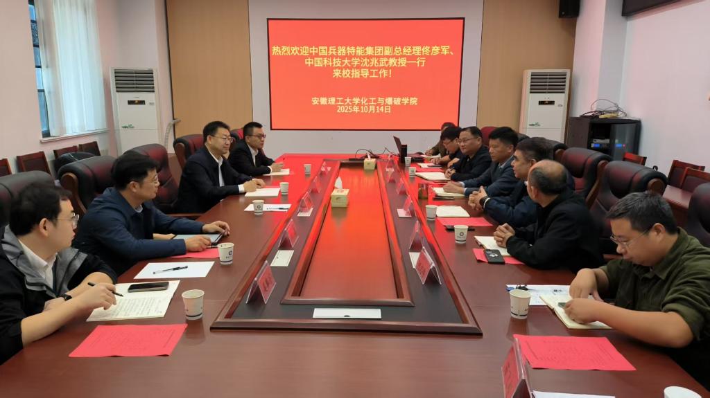 10月14日,中国兵器特能集团副总经理佟彦军、中国科学技术大学沈兆武教授等一行5人来化工与爆破学院开展校企合作交流。学院党委书记刘瑞、院长汪泉以及部分专业教师参加了交流活动。