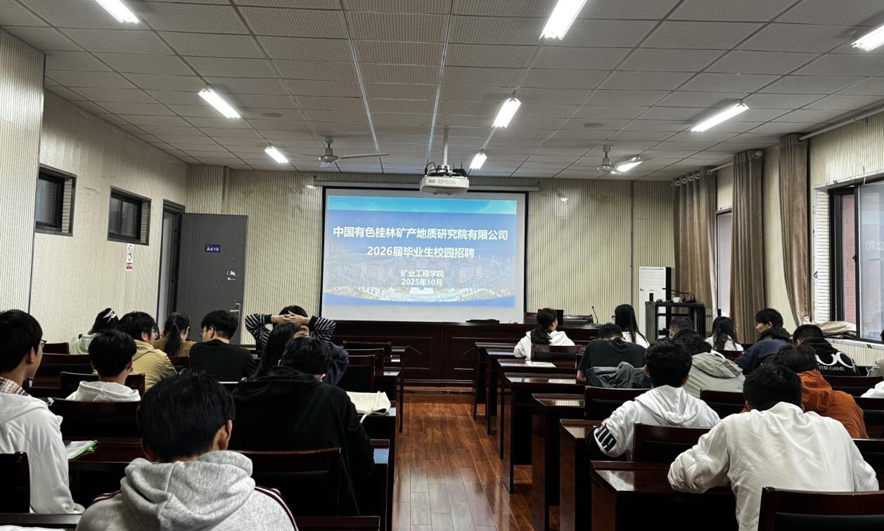 10月15日下午,矿业工程学院在宁远楼A410会议室举办中国有色桂林矿产地质研究院有限公司专场招聘会,矿业工程学院和地球与环境学院30余名毕业生参加招聘会。