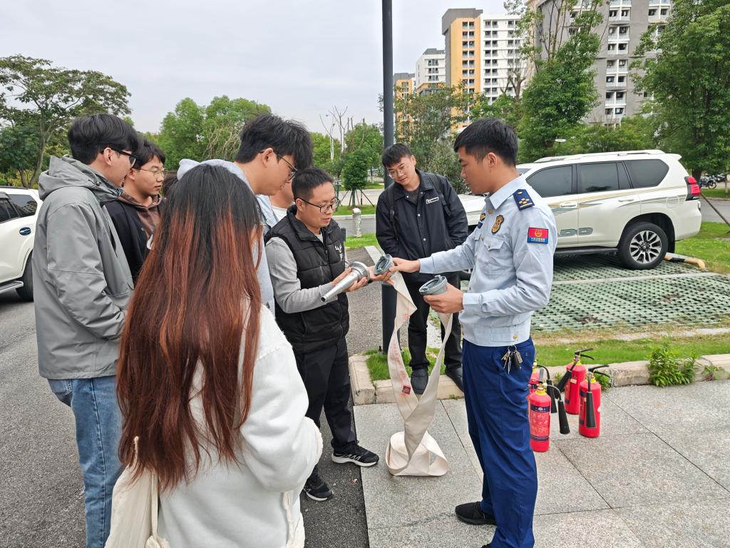 培训环节,汪洋队长以近年来国内外高校场所发生的火灾案例为切入点,深入剖析事故背后的根源性问题,着重强调了消防安全工作的重要性与现实紧迫性。针对实验室安全核心要点,他从电气设备规范使用、危化品存储管理等基础要求,到操作流程中的防火细节,进行系统性讲解,让在场师生深刻认识到火灾隐患往往潜藏于日常操作的细微之处。理论讲解后,汪洋队长现场展示灭火器、消火栓等消防器材的构造原理,并示范操作要领,在其指导下,师生们上手实操,体验灭火过程,切实将理论知识转化为实战技能。