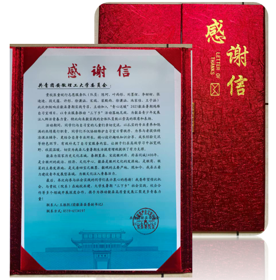 “医童皖行志愿服务队”持续深耕志愿服务与社会实践,团队活动得到中国日报网、中国网、中青校园等多家媒体报道。团队此前已成功入选2025年团中央“七彩假期”国家级志愿服务团队并完成项目总结。实践期间,团队主动加入歙县“青心送暖”暑期鸿雁自习室项目,其出色表现获得了黄山市歙县团委的高度赞扬,并向我校发来感谢信。
