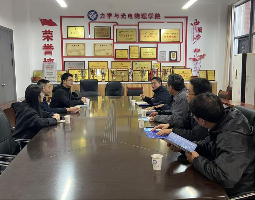 为进一步推进校企合作供需对接,10月21日,力学与光电物理学院在明道楼A320会议室召开校企合作交流座谈会。会议特邀艾迪西流体控制集团有限公司副总经理、2001级物理专业校友汪李坤参加,学院领导班子及相关教师代表出席座谈会,学院党委副书记余水主持会议。