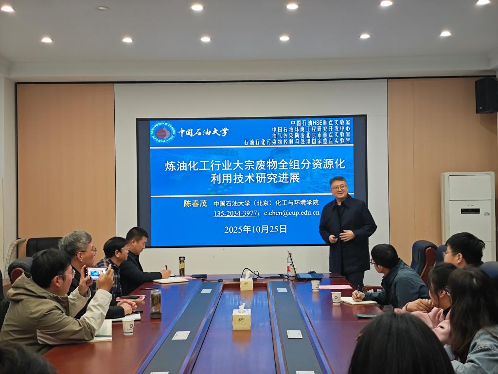 10月25日上午,中国石油大学(北京)陈春茂教授在崇礼楼东103报告厅作了题为《炼油化工行业大宗废物全组分资源化利用技术研究进展》的学术报告,并指导化工与爆破学院化学工程与技术学科建设。化工与爆破学院院长汪泉教授主持学术报告会,学院教师及学生80余人参会。